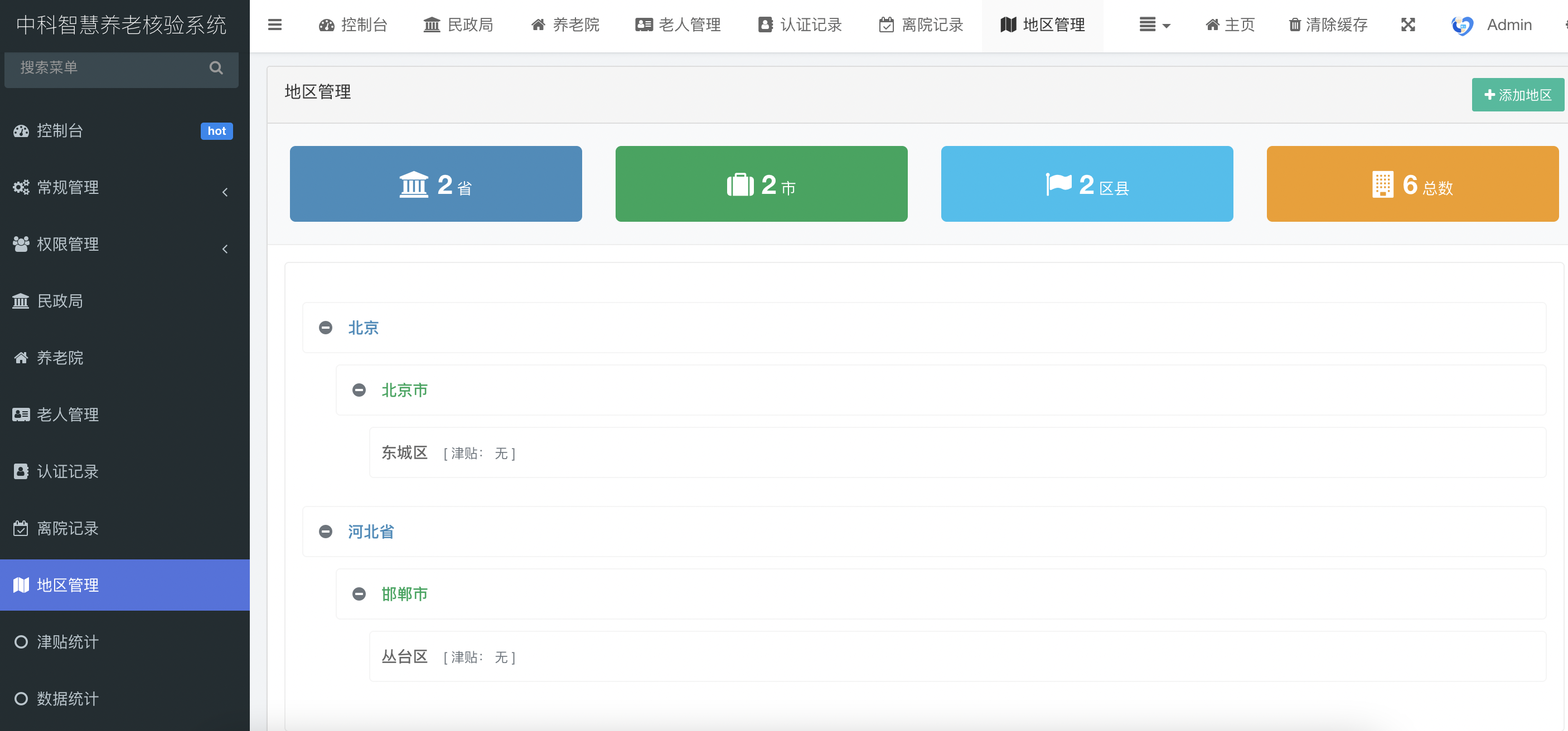 養老院信息管理:支持養老院新增、編輯、刪除及管理員賬號設置。